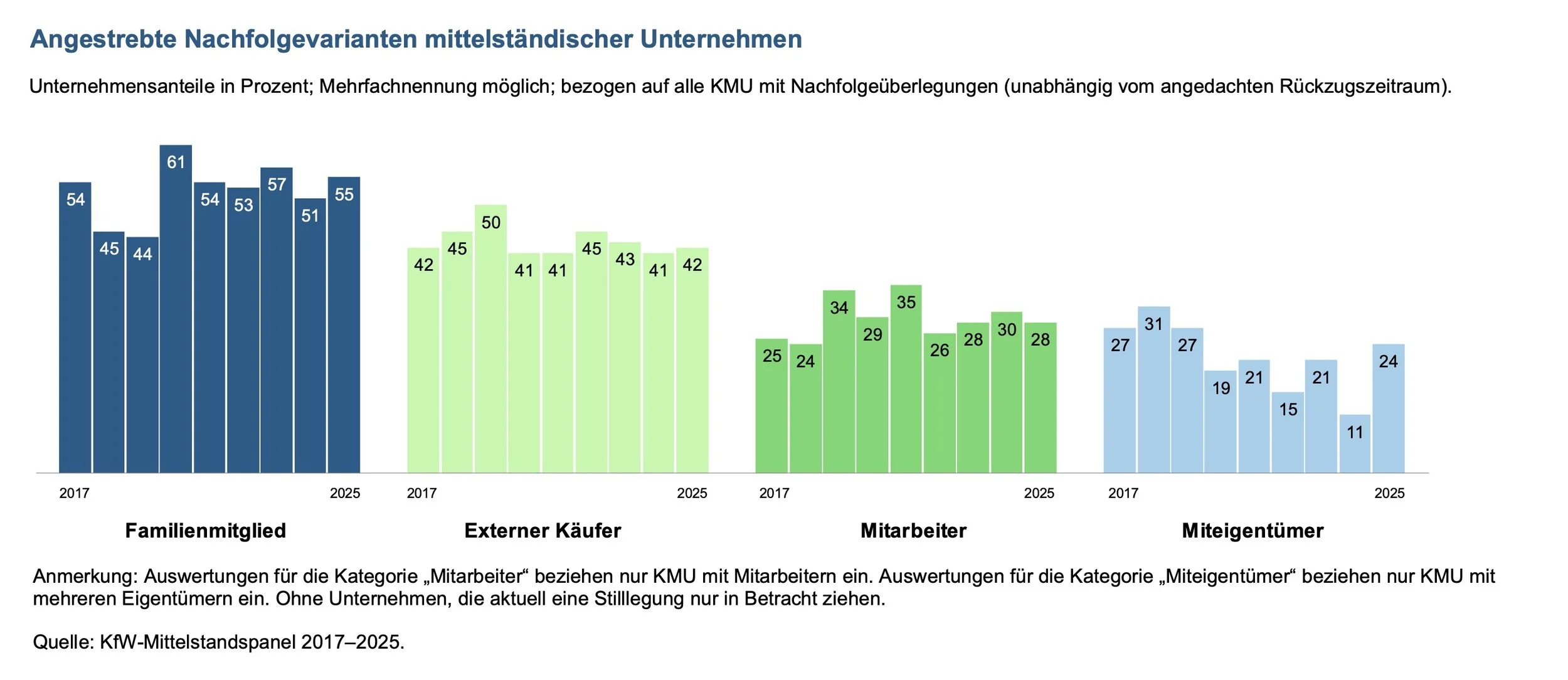 Abb 2: Nachfolgevarianten im Wandel: Der MBO-Boom als Signal (Quelle: KfW Nachfolge-Monitoring Mittelstand 2025)